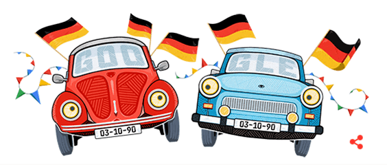 Zum Tag der deutschen Einheit zeigt Google ein geniales Doodle: Käfer und Trabbi fahren einträchtig nebeneinander her. Google verweist in seiner Doodle-Beschreibung auf den Beginn der Einheitsbestrebungen: der einzigen friedlichen Revolution, die es auf der Welt je gegeben hat. Deutschland kann stolz darauf sein, sich immer wieder positiv mit Friedensthemen in die Geschichtsbücher zu schreiben.